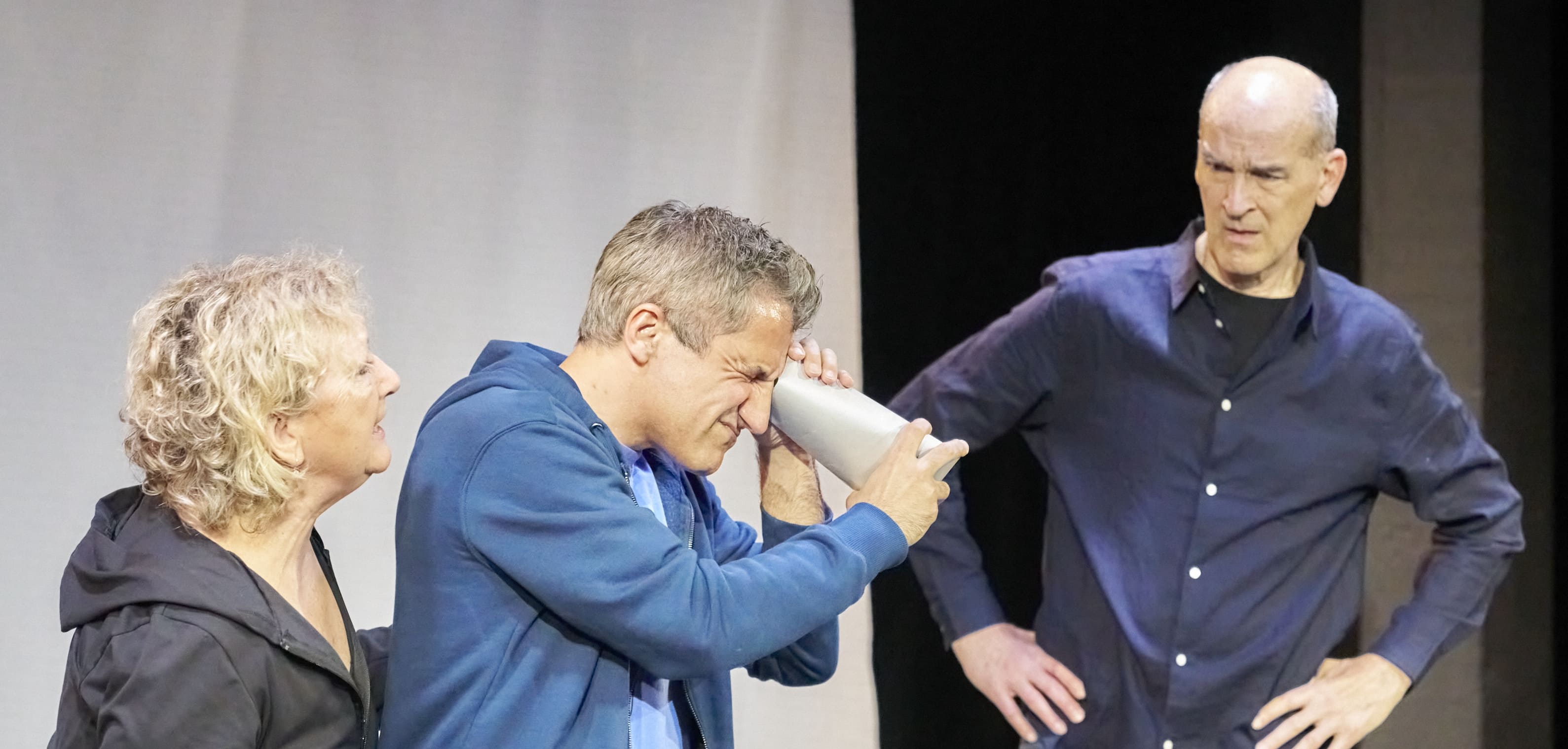 Tre figure clownesche e dalla memoria offuscata, senza una visione chiara del futuro e intrappolate in un presente incerto, cercano una via d’uscita da una circostanza surreale: un invito enigmatico ad una festa di cui ignorano giorno, luogo e orario. Non conoscono neppure il mittente o il motivo. Camminando sul margine di un paesaggio sospeso tra nonsense e significato profondo, tutte e tre tentano di trovare risposte al mistero, alternando dialoghi assurdi a monologhi che esplorano l’oscurità di un mondo caratterizzato da solitudini e dispersioni, sovrappensieri e sottopensieri, regole autoimposte e smarrimento esistenziale.