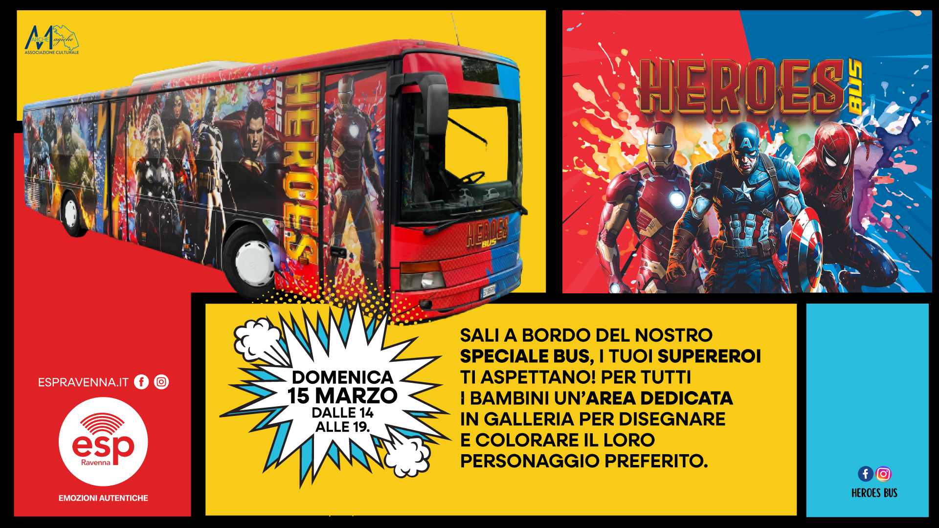 Domenica 15 marzo, dalle 14:00 alle 19:00, preparati a salire a bordo dell’autobus tematico dedicato al mondo dei supereroi.