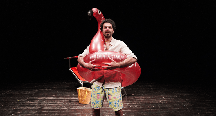In uno spettacolo dal tratto grottesco viene messa sotto la lente d’ingrandimento la vita balneare, nella sua specifica accezione romagnola: quel microcosmo schizofrenico, intimo e allo stesso tempo esibizionista, che alterna stati di eccitazione febbrile a lunghe paralisi postprandiali. Nutrito dallo sguardo dolce e amaro del fotografo inglese Martin Parr, questo monologo osserva le illusioni e le ossessioni di un Paese, il nostro, che dà il suo meglio e il suo peggio in vacanza. Ma, se quella balneare sembra una vita destinata a ripetersi uguale a sé stessa per l’eternità, viene a galla oggi un problema: turismo di massa, alluvioni, subsidenza, innalzamento del livello del mare minacciano l’esistenza di un ecosistema che, per troppo tempo, abbiamo dato per scontato.