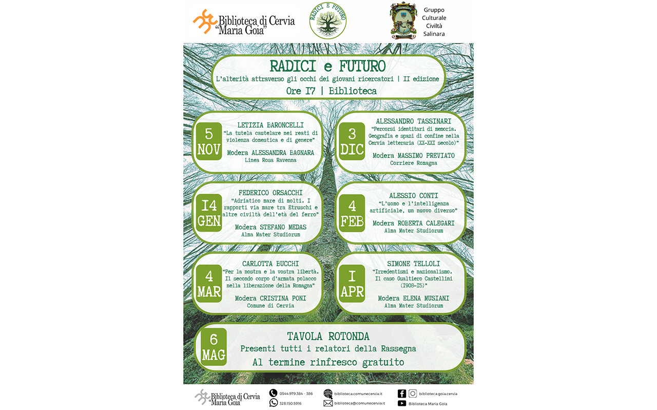 Prende il via la rassegna “Radici e Futuro. L’alterità attraverso gli occhi dei giovani ricercatori”, organizzata dalla Biblioteca Comunale Maria Goia in collaborazione con lo storico e ricercatore Luca Bagnolini e con il Gruppo Culturale Civiltà Salinara.
